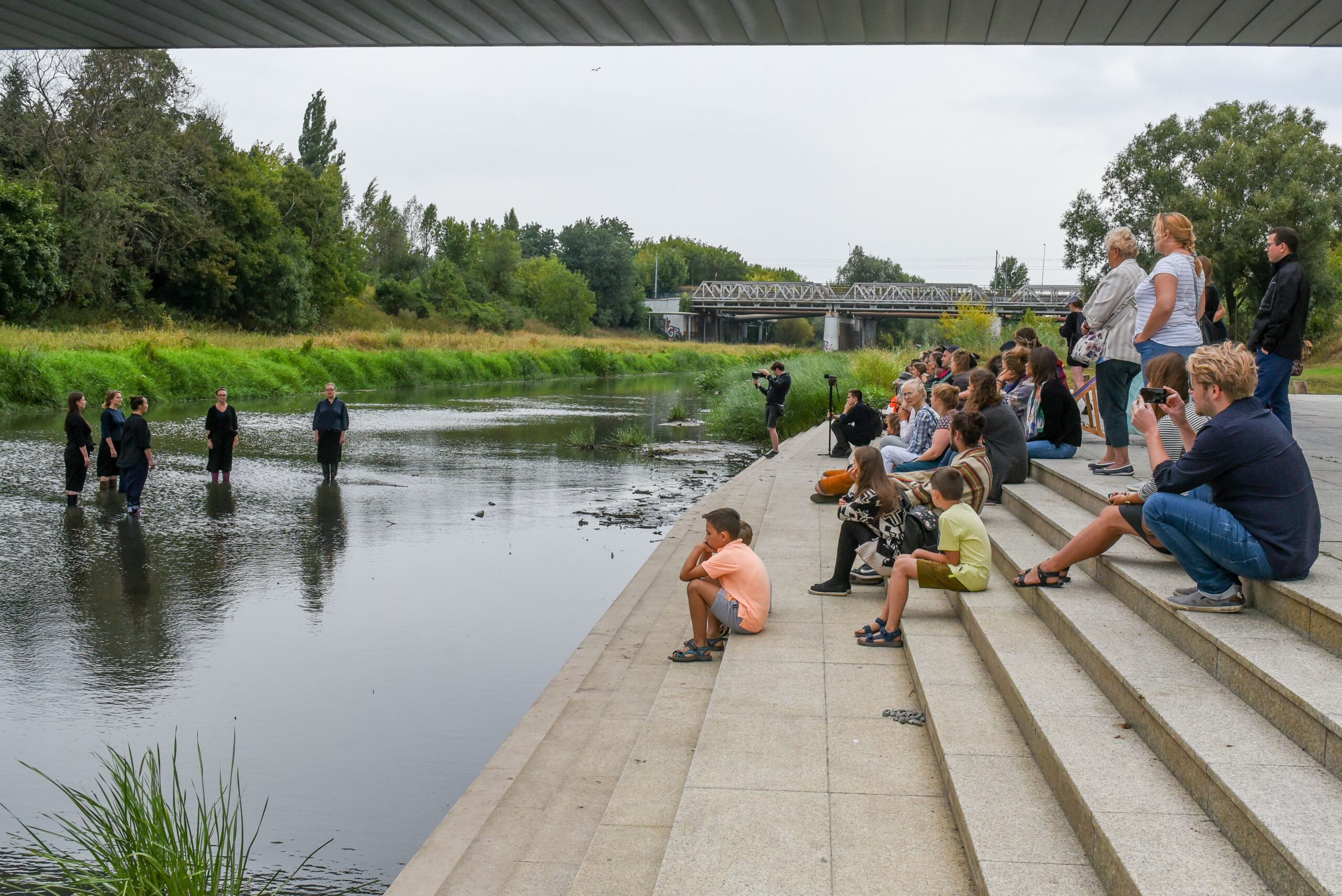 At its core lies the embrace of the unknown: the spontaneous occurrences, echoes and resonances that belong to the site itself. The Cybina River flows through Poznań — a city of half a million inhabitants in western Poland — and in Heresong two forces meet: the composed sound of the raw human voice and the multilayered acoustic tissue of this riverine landscape.